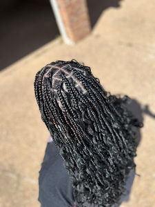 Hair is analyzed for strength, moisture and overall composition. This style is based on your hair needs, strengths and weaknesses. This service includes a clarifying or hydrating shampoo followed by an oiled scalp massage, deep conditioning steam treatment and gentle detangling. Hair is blow dried and pre-parted 8-9 rows from nape to crown (depending on head size). This style is done to mid back unless otherwise requested. This style is done with synthetic waves; human hair can be provided at an additional cost (fullness + length can be chosen under "Add On Services"). Ends can be curled or left straight. Edges are laid, mousse is applied then placed under dryer to set. **NEW CLIENTS ARE REQUIRED TO BOOK A CONSULTATION BEFORE SERVICE AND APPOINTMENT TIME CAN BE CONFIRMED** PLEASE NOTE: This service has a specific time duration. If for any reason servicing takes longer than the allotted time duration, 15% of your service price will be billed hourly until service is completed.
